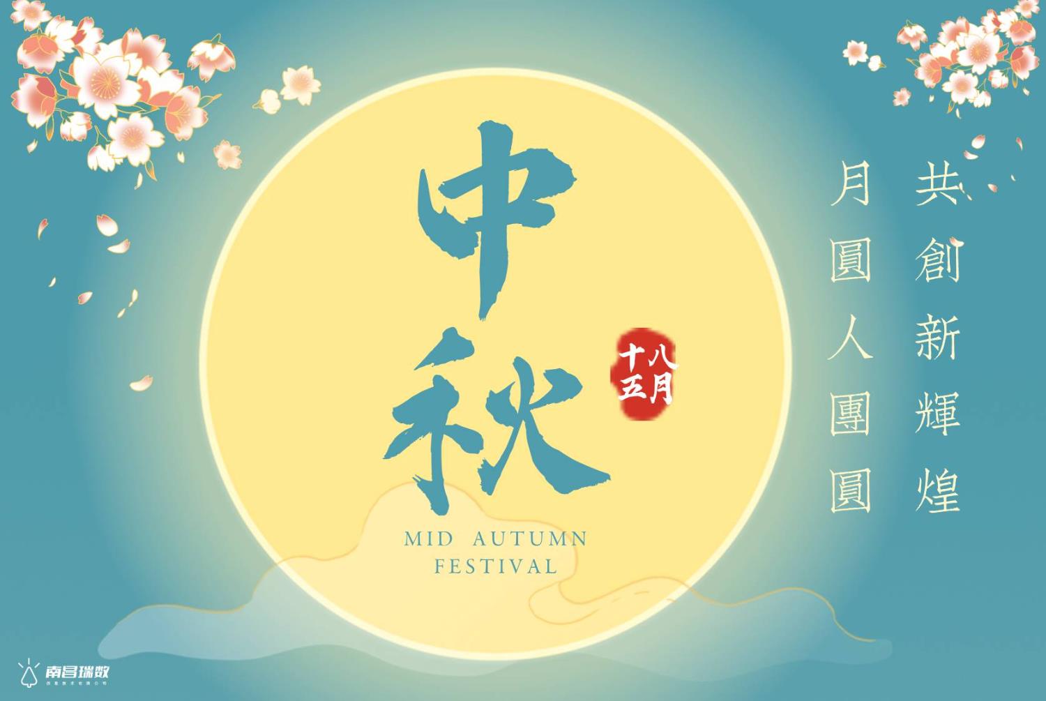 皓月当空,秋风送爽。值此中秋佳节来临之际,南昌瑞数信息技术有限公司全体员工向长期以来支持和信任我们的客户、合作伙伴,以及社会各界朋友致以诚挚的祝福:中秋快乐,阖家幸福!